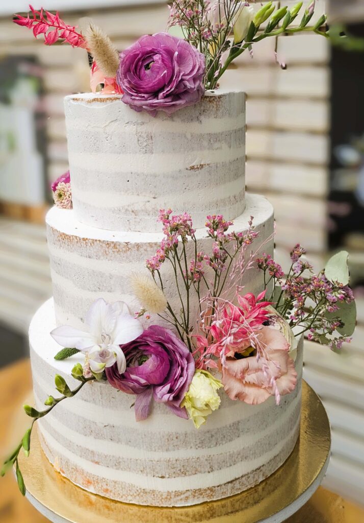 Der wohl größte Tortentrend 2026: Hochzeitstorten ohne Fondant. Statt dicker Zuckerschichten werden Torten perfekt mit fein eingestrichener Buttercreme oder leichter Creme überzogen. Der Look ist clean, modern und gleichzeitig unglaublich edel.