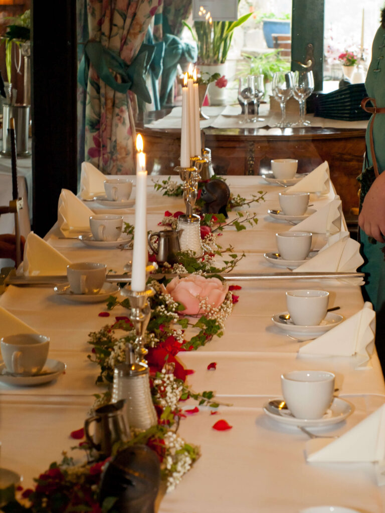 Als der Abend näher rückte, ging es in die festlich vorbereiteten Räume der Burg. Ob Rittersaal oder historischer Saal – überall entstand eine Atmosphäre, die elegant, warm und gleichzeitig voller Charakter war.